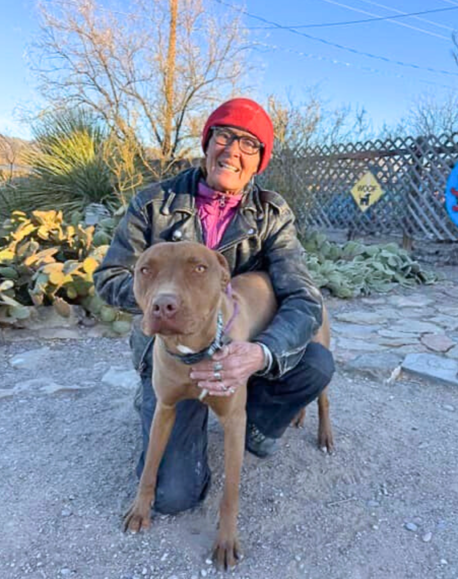 We haven’t introduced you to Michelle yet and it’s our pleasure to finally do so today. Michelle is one of our work campers who lives in her rig with her dog Paco in our small no frills Desert Haven RV Park. She trades her time volunteering to take care of our animals in exchange for her campsite and hookups.